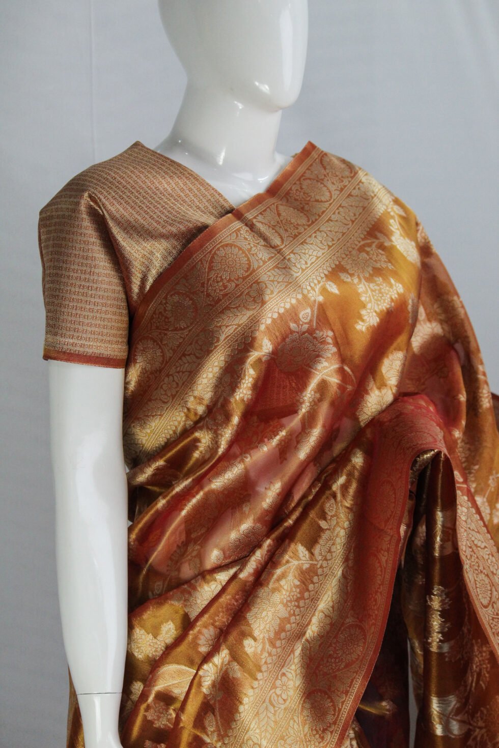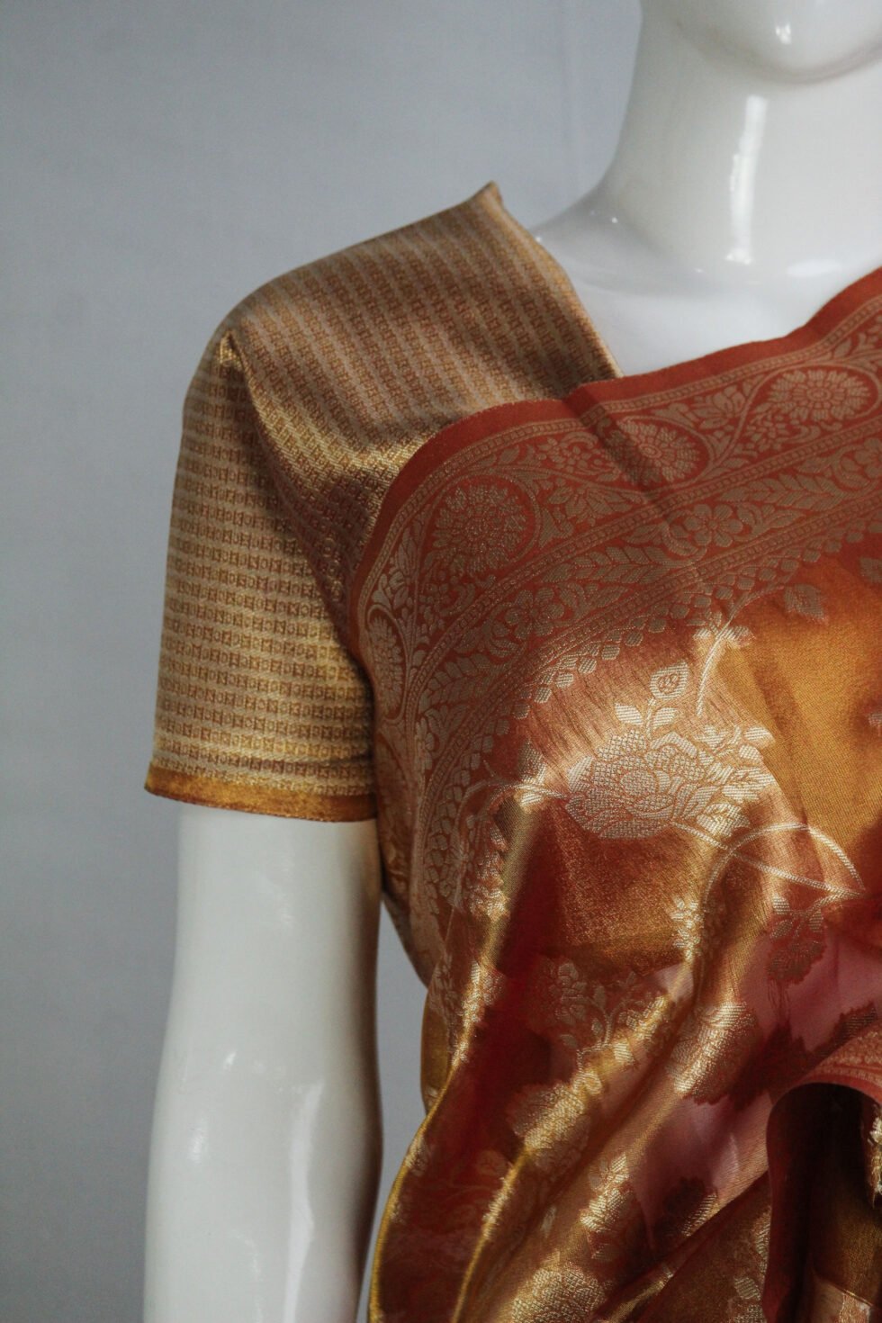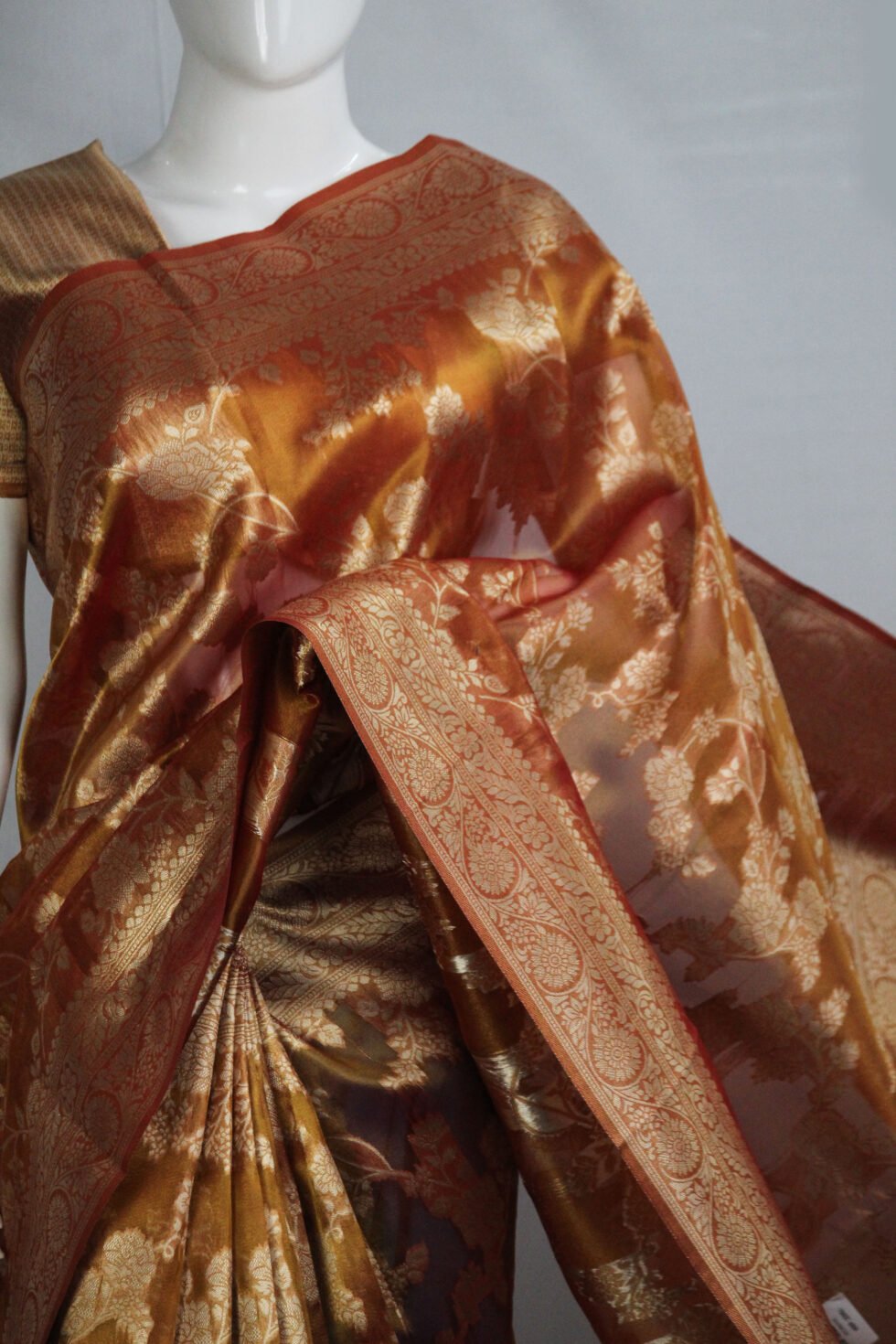 • Features finely woven zari floral motifs across the body