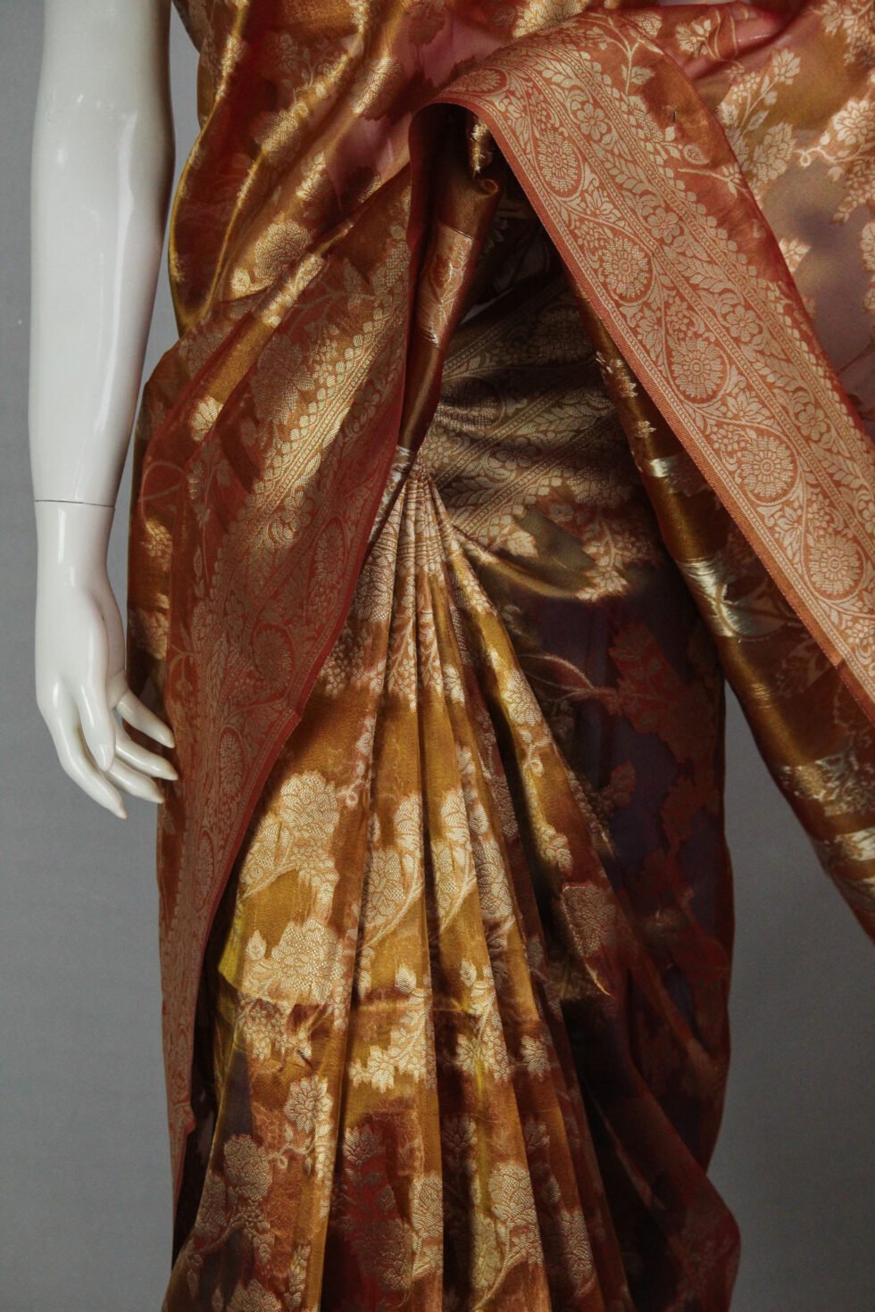 • Detailed antique-style golden zari border & grand pallu